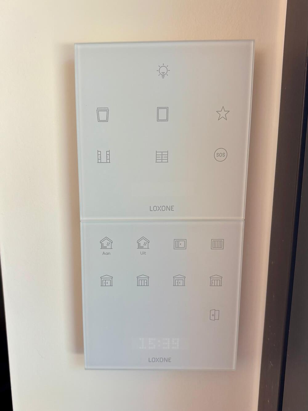 - Op maat gemaakte knoppenpanelen met duidelijke iconen per ruimte